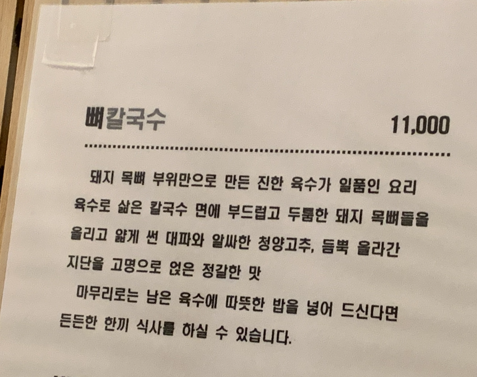 1) 뼈칼국수 (11,000원)