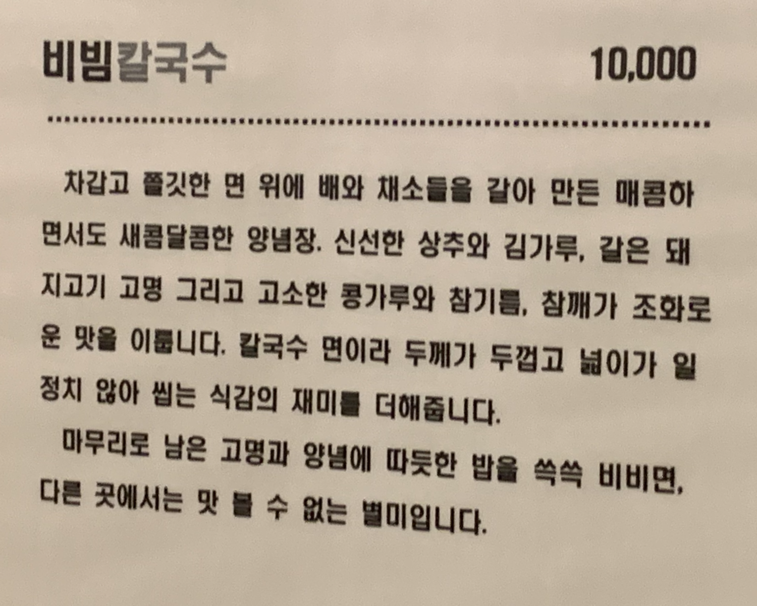 2) 비빔칼국수 (10,000원)